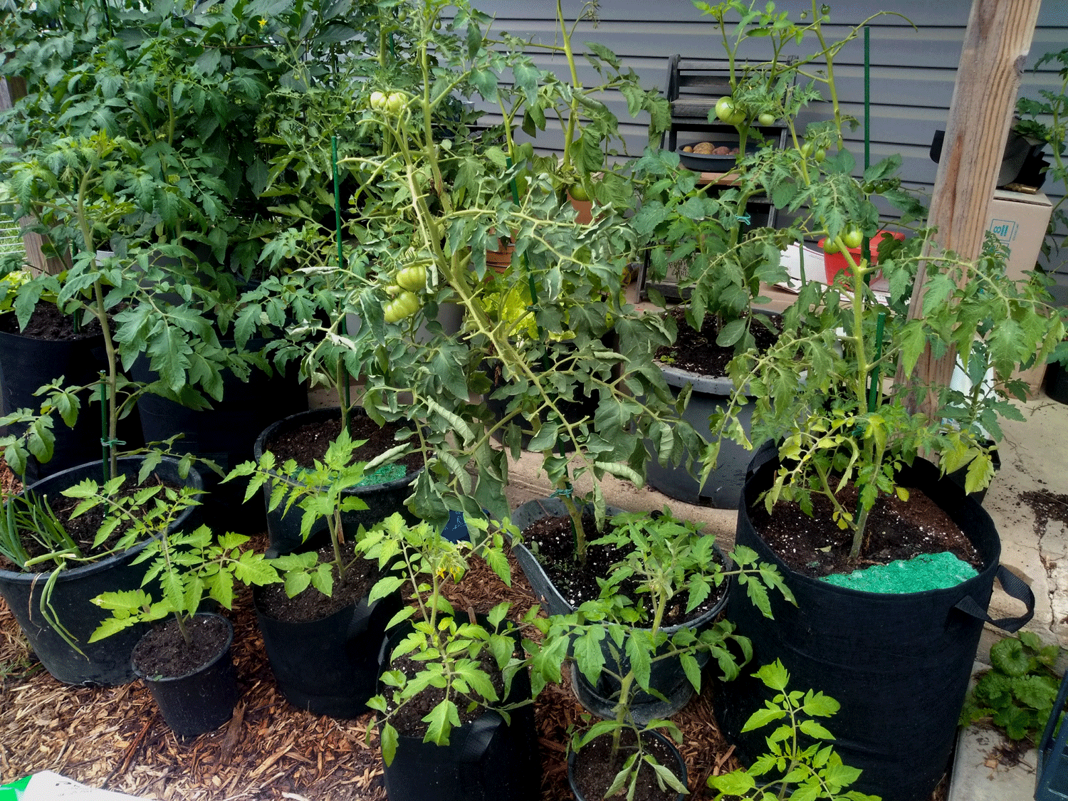The one bed, where I did properly prune and mulch and spaced them more widely, performed poorly by comparison, until I moved (crowded) six sizeable container tomato plants into the mosquito tent with them. Then they all went crazy, their “arms” grew and entwined; they became a wild jungle. Then they started blooming and producing fruit. It was amazing. Perhaps I would get way more fruit if I pruned the hell out of them, like every YouTube gardener insists upon, but here’s the thing, I think they are happy and thriving in their overgrown, tangling green state, and that was as important to me as food.